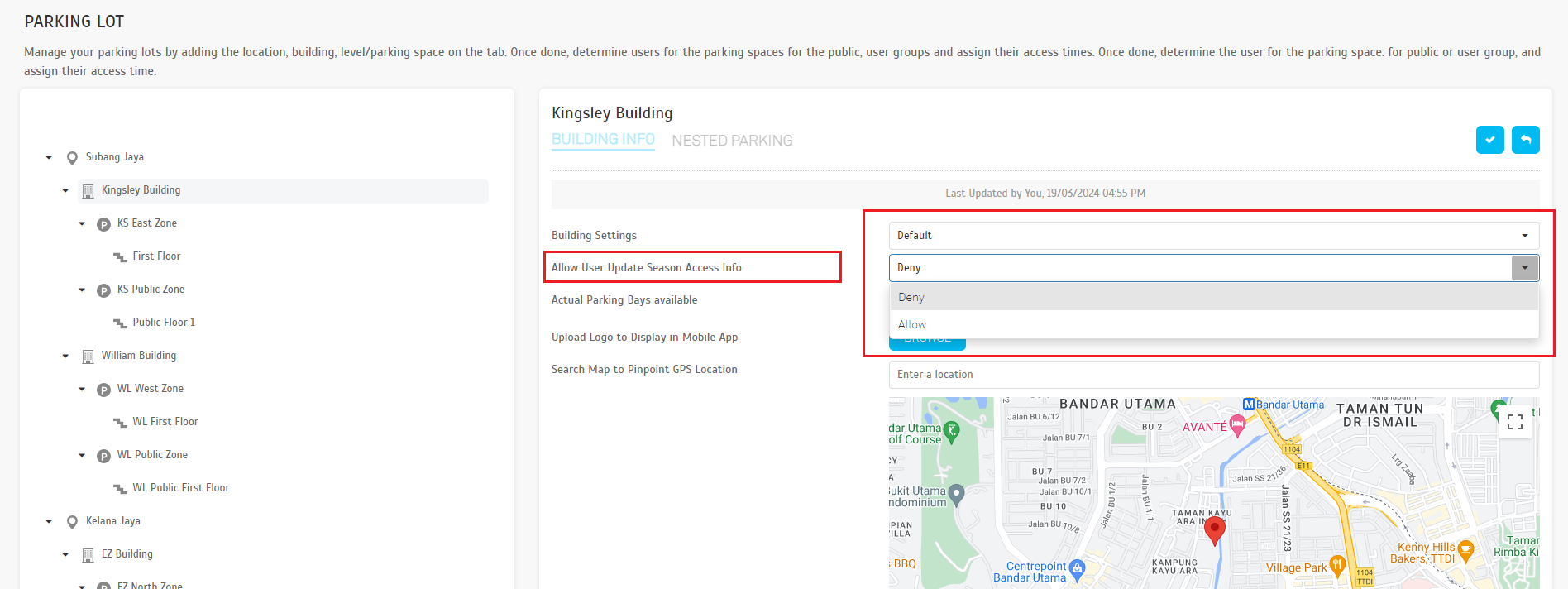 Operator View: Parking Rule > Parking Lots > Building