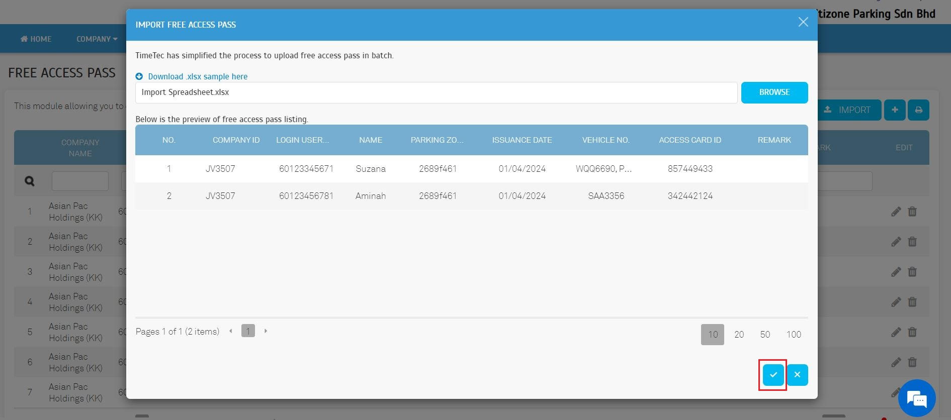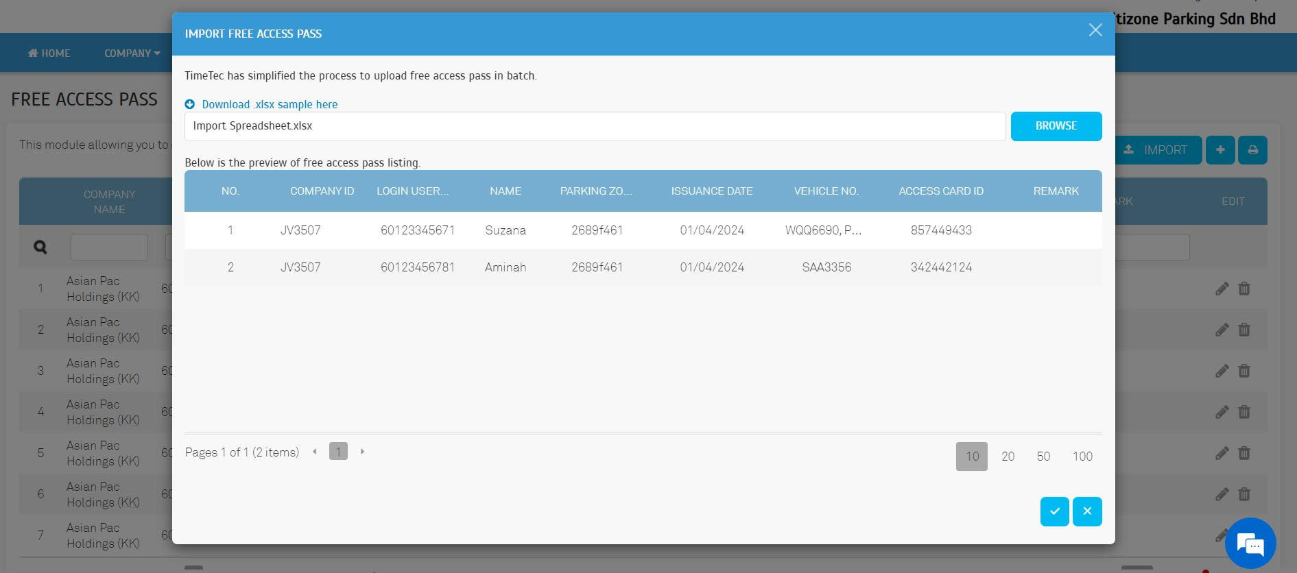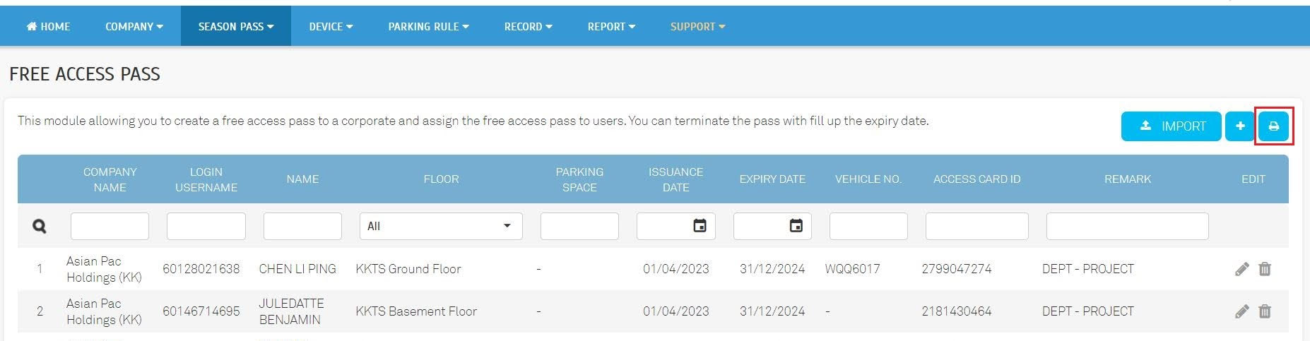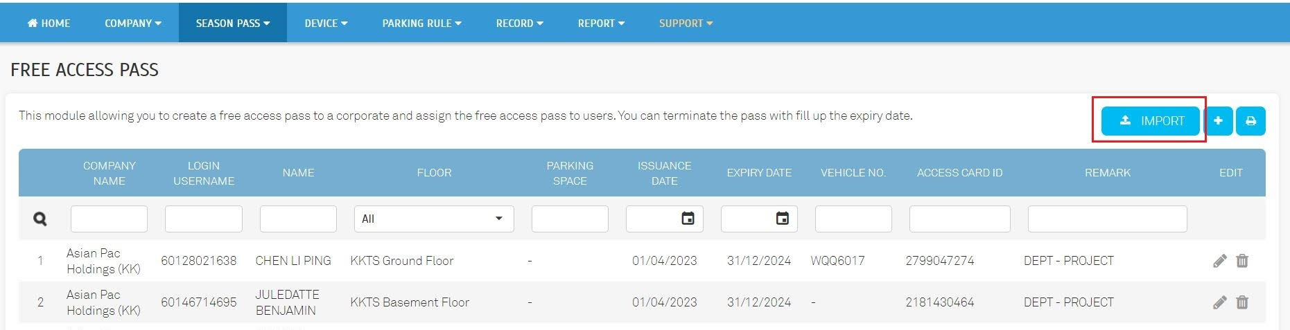 2. Free Access Pass - Integrated an Excel file Import and Export function