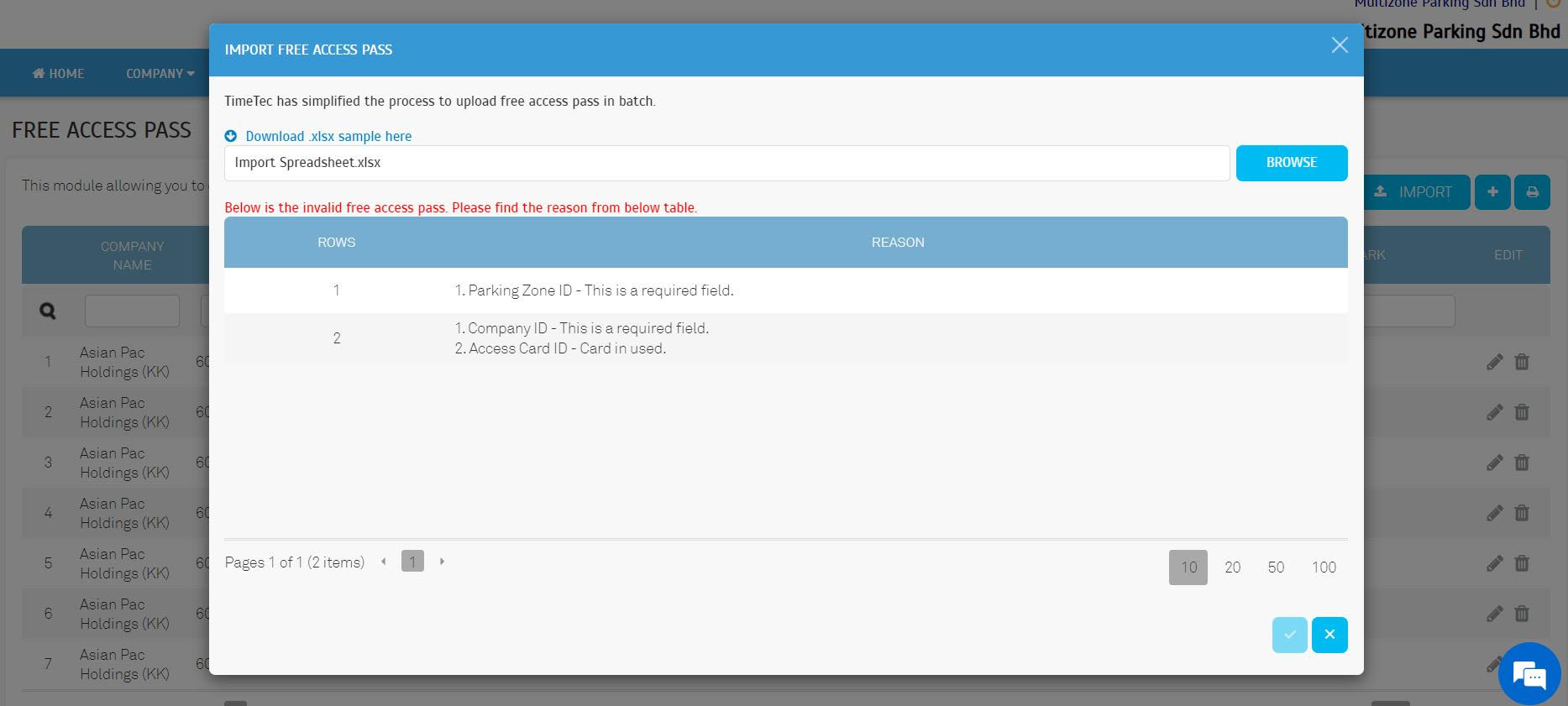 | d. If the import process fails, a detailed error list will show users the specific row number and the error cause. |