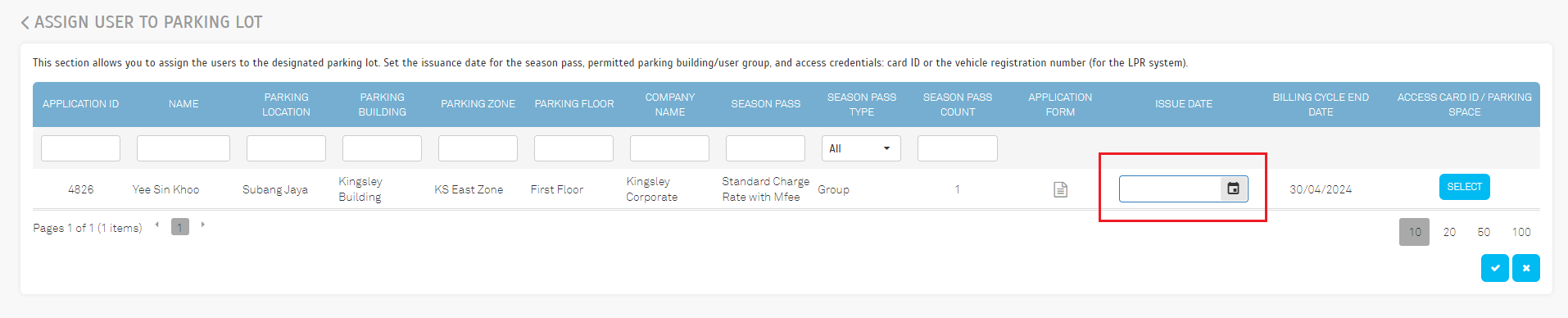 1. Season Pass - Included the ability for users to update their season access information within the Building Setting in the Parking Lot Module