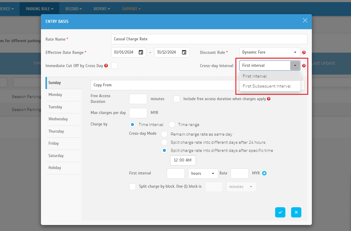 Parking Rule > Charge Rate > Entry Basis