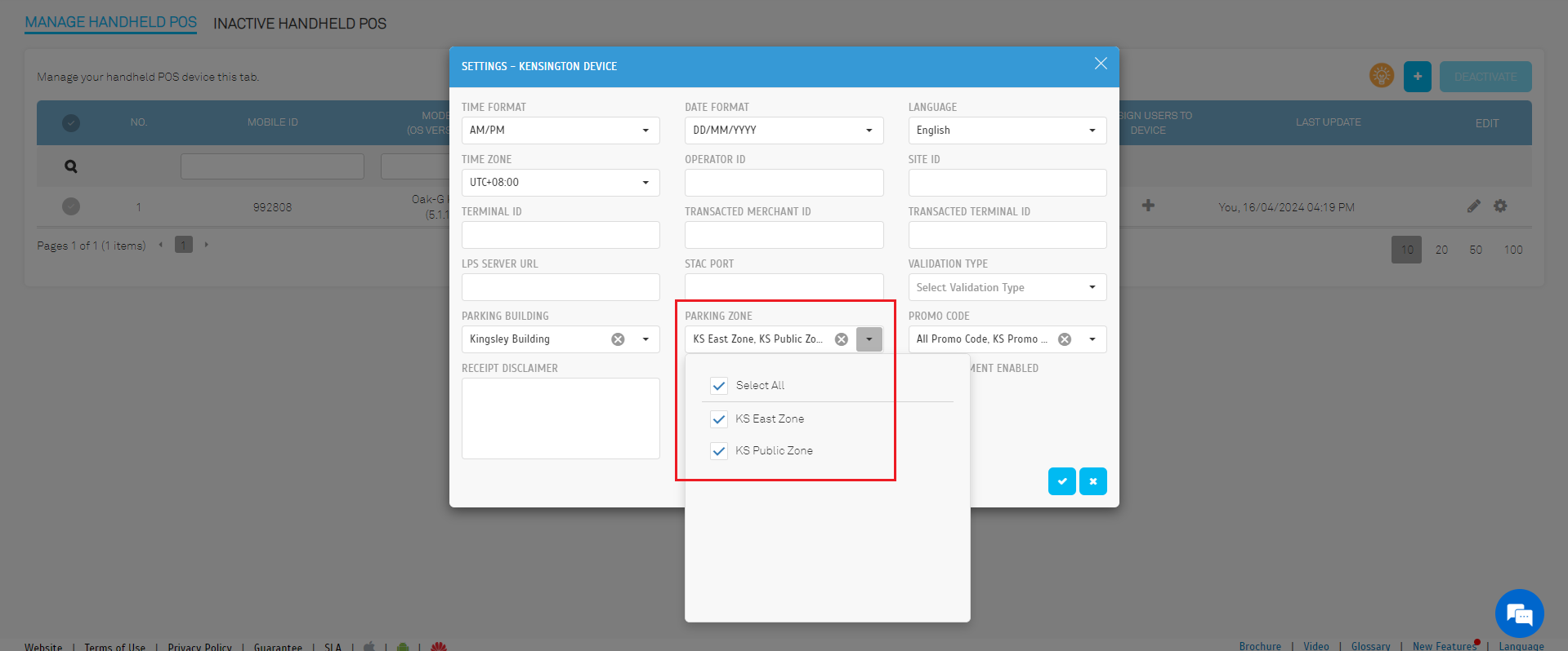 The Parking Zone field has been enhanced to allow operators to select multiple zones within the building.