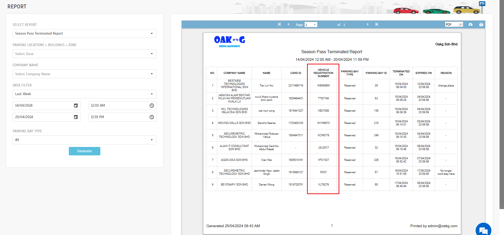 7. Season Pass Termination Report - Include car plate number information