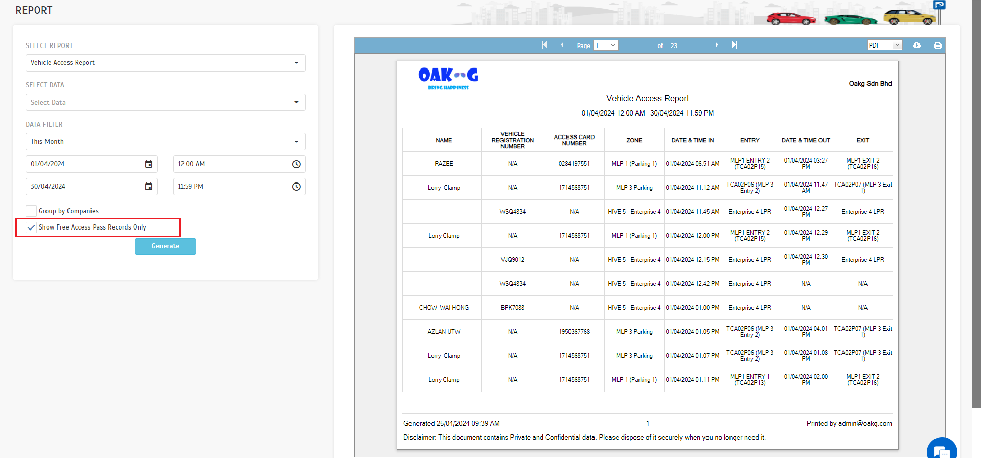 | Report > Vehicle Access Report |