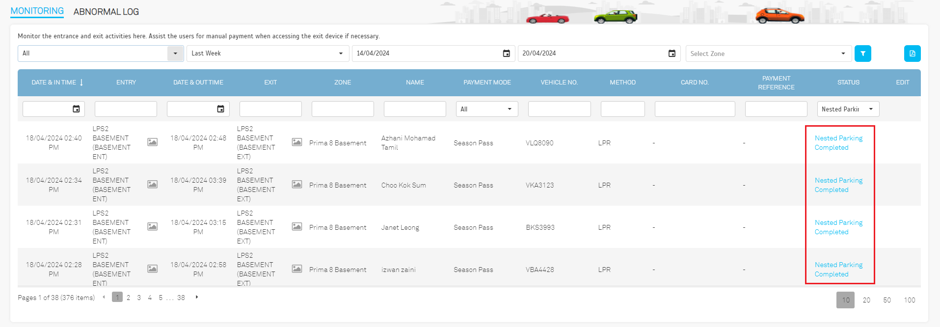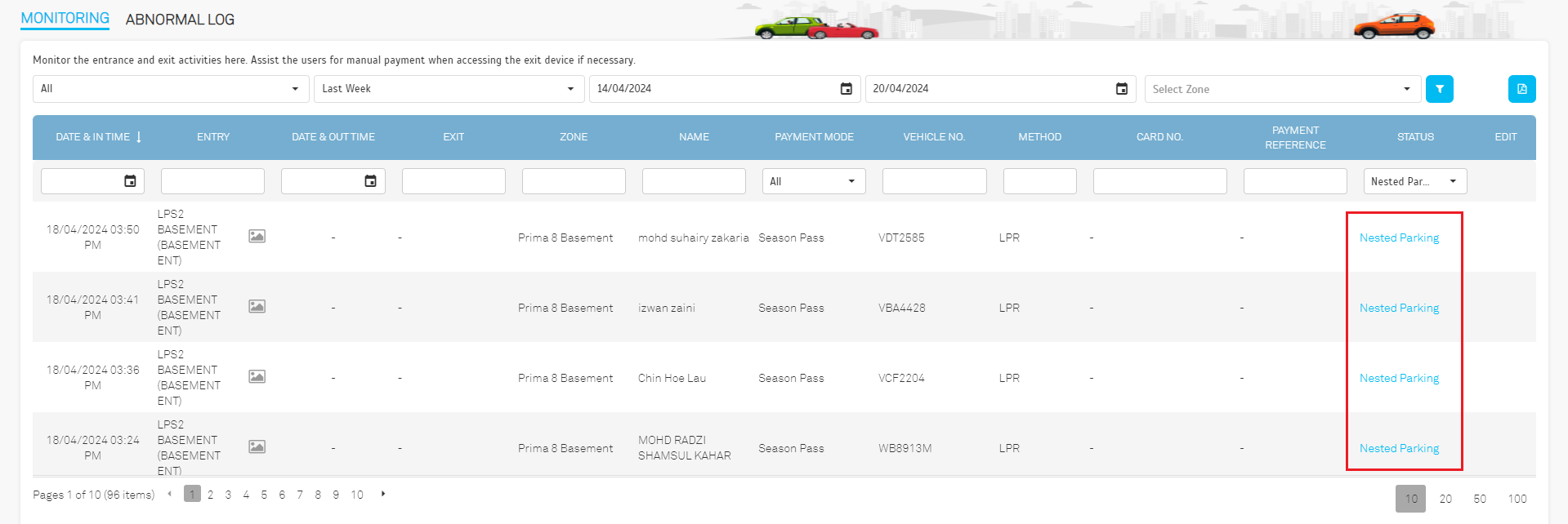 10. Monitoring - Enhance the display of nested parking records for LPS2 LPR to improve visibility and usability