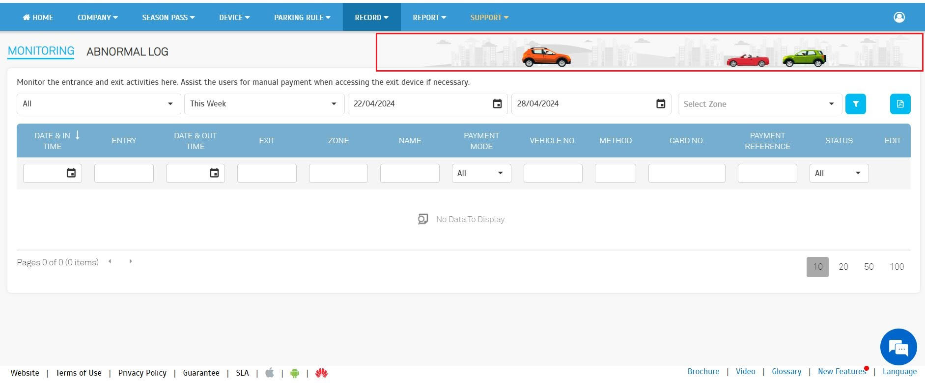 • Parking Zone ID: Refer to Parking Rule > Parking Lots > Zone Level > Zone ID