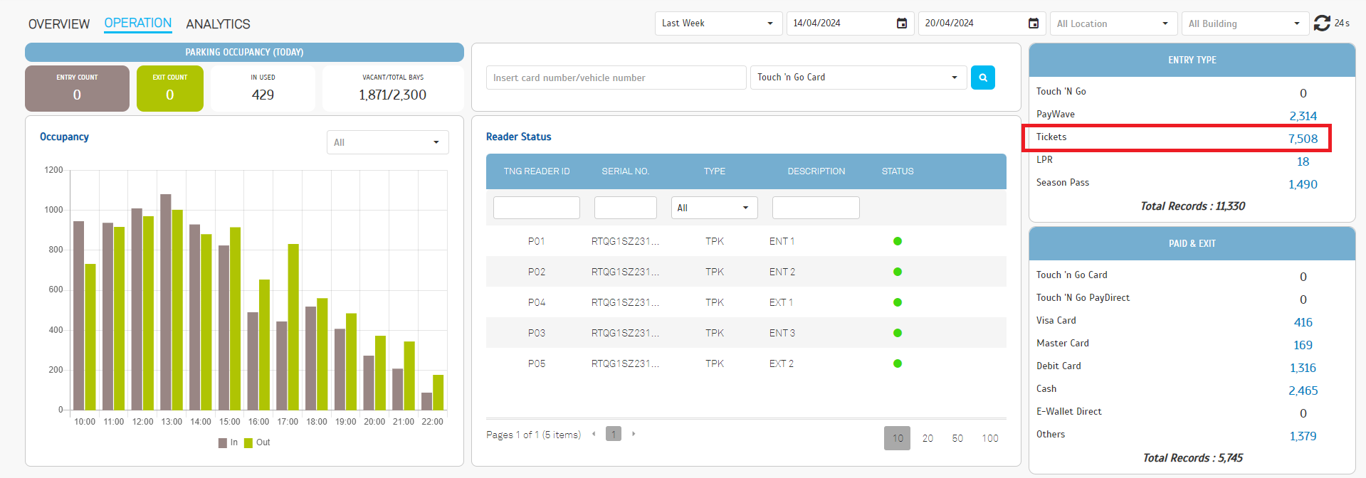 12. Operation Dashboard - The Ticket Count in the Entry Type section has been updated to provide more precise and reliable data.