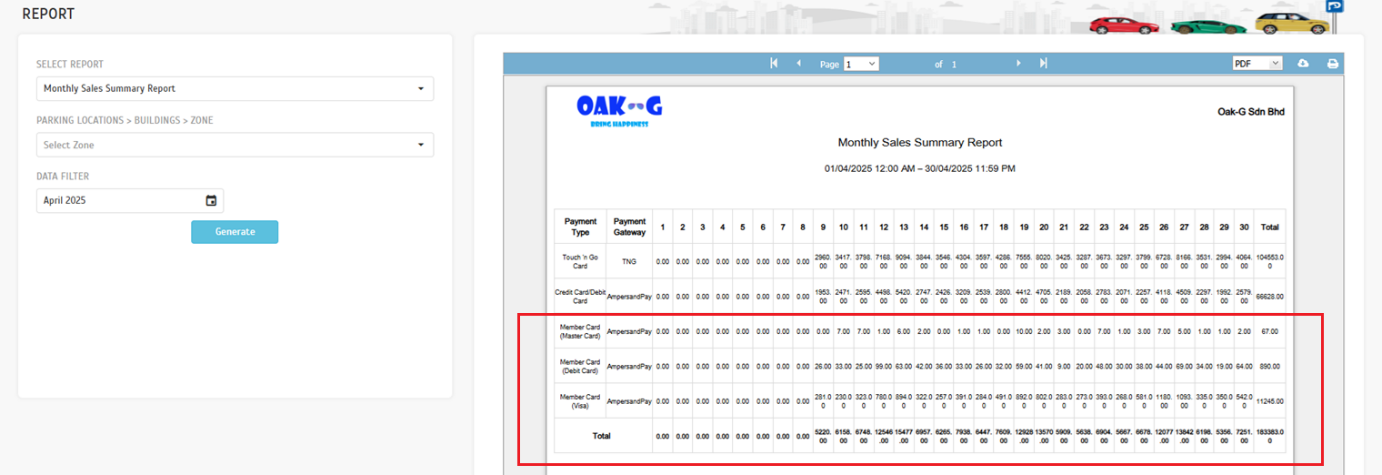 The Monthly Sales Summary Report now supports Member Card Collection.