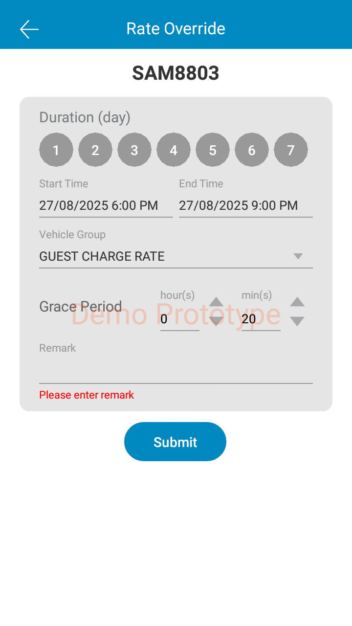 When "Require Remark on Rate Override" is enabled in the web settings, users must enter a remark.