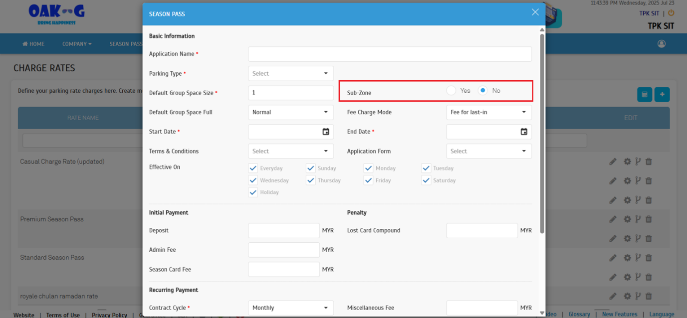 a. Operators can now configure whether a charge rate applies to sub-zones by selecting either "Yes" or "No" in the configuration setting.