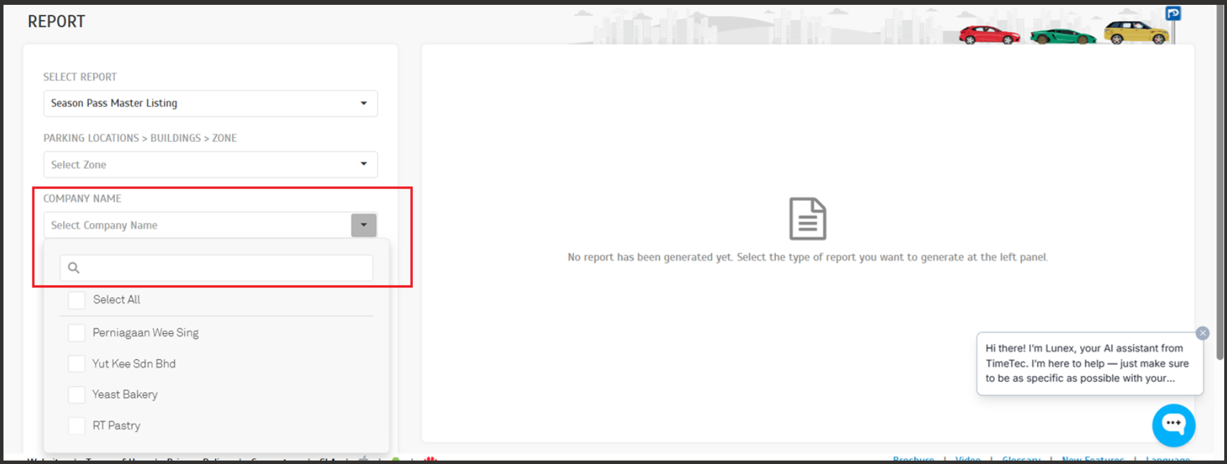 For operators managing multiple companies, the Company Filter in the report module now supports search functionality, making it faster and easier to locate and select the desired company.