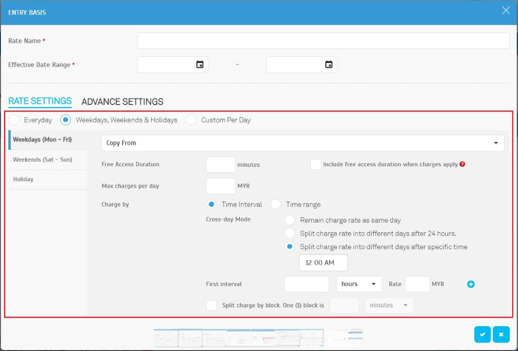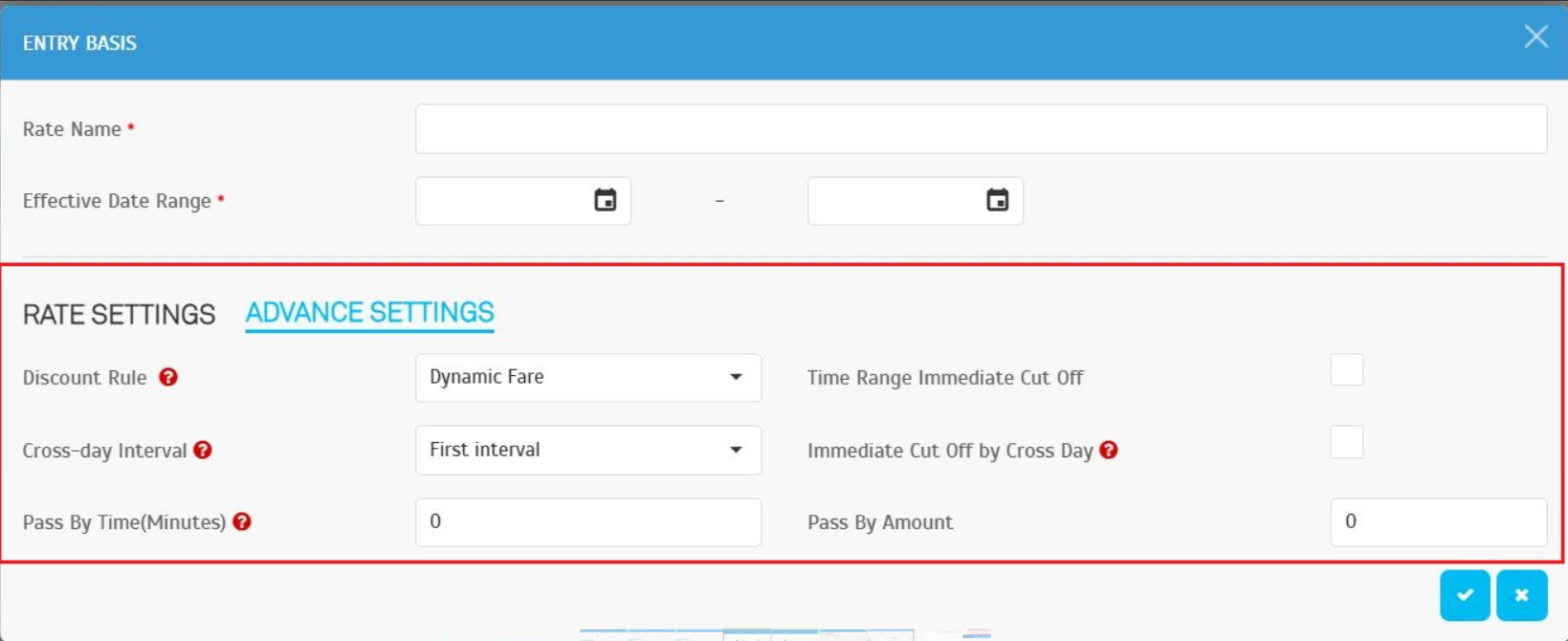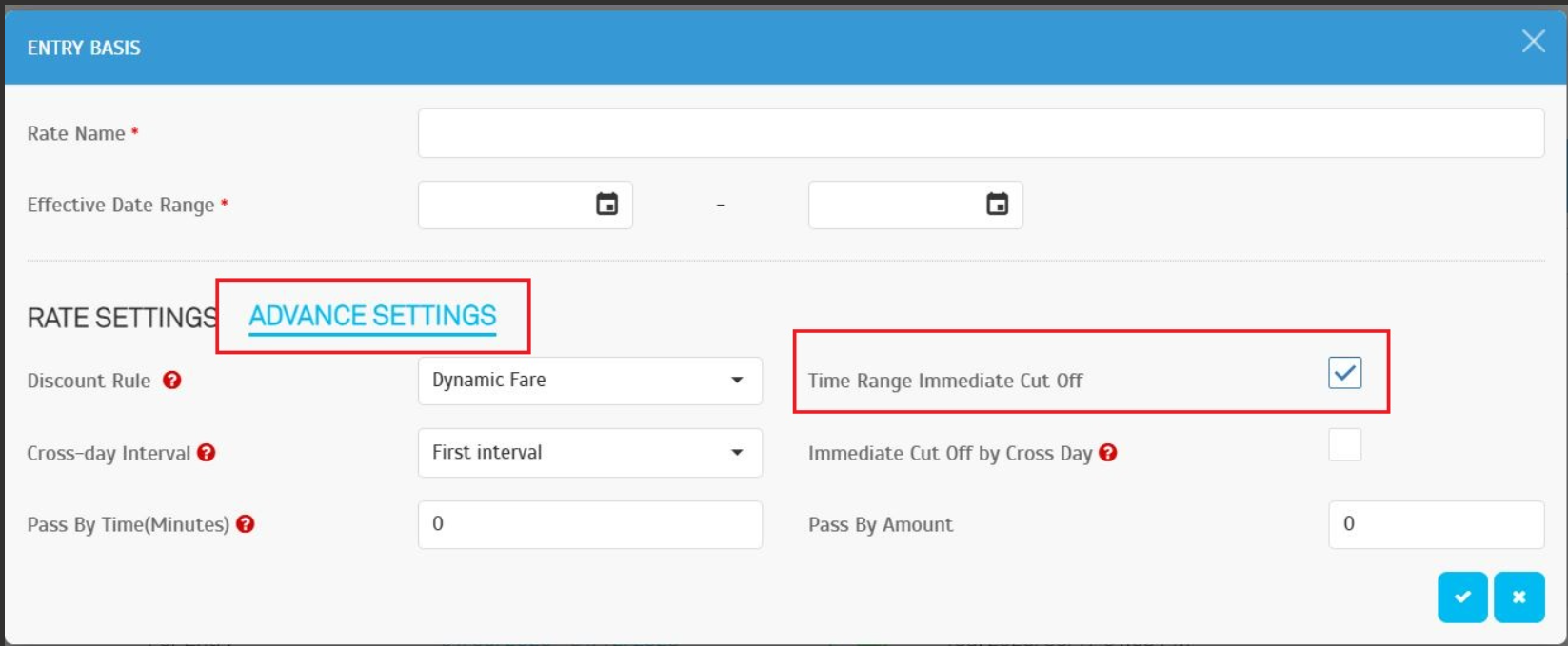 Found at: Parking Rule > Charge Rates > Entry Basis > Advanced Settings