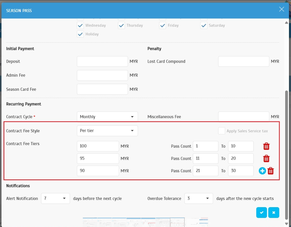 Improved the Per Tier calculation logic for Season Pass Charge Rates (Contract Fee – Per Tier).