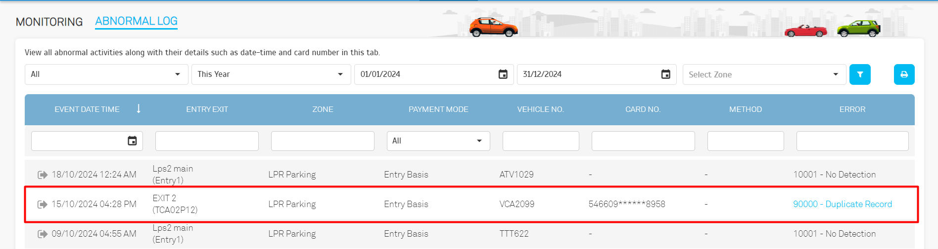This report provides insights into vehicle stay durations within specific time bands, categorized by exit types such as Touch 'n Go, PayWave, LPR, Tickets, Season Pass, Manual Checkout, and Member Card.