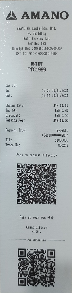 Once the invoice number is processed and available via the service, an updated receipt will be issued with a “RECEIPT NO” section. Users can reference this receipt number for future e-invoice requests.