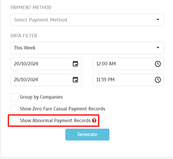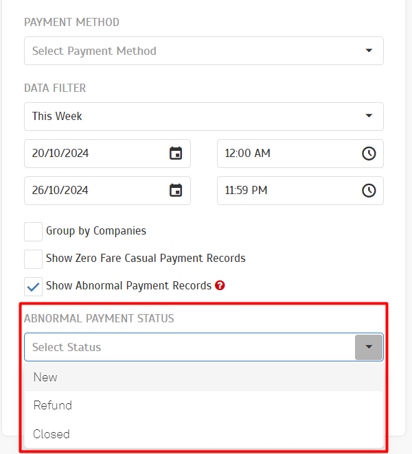 | We introduced a new filter to the Payment Transaction Listing report, enabling operators to easily identify and review abnormal transactions. This filter allows operators to: • Quickly Identify Unusual Activity: Pinpoint transactions that deviate from normal patterns or exhibit suspicious behavior. • Conduct Thorough Investigations: Analyze flagged transactions to determine the root cause of the abnormality. • Prevent Fraud and Loss: Take proactive measures to mitigate risks and protect the business. By providing a targeted view of abnormal transactions, we empower operators to maintain the financial security and integrity. |