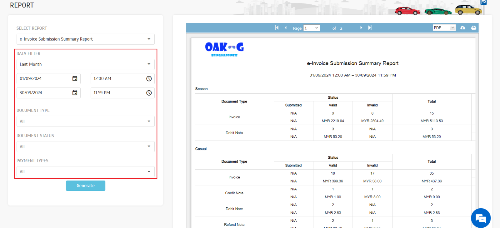 | We introduced a new E-Invoice Submission Report to provide valuable insights into e-invoice submissions. This report offers a detailed view of all submitted e-invoices, enabling operators to: • Track Submission Status: Monitor the progress of e-invoice submissions. • Identify Potential Issues: Quickly identify any errors or delays in the submission process. • Improve Efficiency: Analyze historical data to optimize future e-invoice workflows. By leveraging the customizable filters, operators can tailor the report to specific needs, such as filtering by date range, supplier, or invoice number. This granular level of reporting empowers organizations to make data-driven decisions and enhance their e-invoicing processes. |